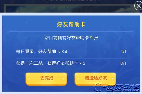 每天做任务一共能获得9张好友帮助卡,同样宝藏里也可以获得一定的好友帮助卡。