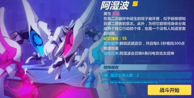 崩坏3阿湿波SS怎么打,阿湿波SS打法阵容推荐。崩坏3阿湿波SS是记忆战场中比较难打的怪物,其还能分身呢,玩家需要正确的战术来打,崩坏3阿湿波SS怎么打,西西小编为大家带来阿湿波SS打法阵容推荐。