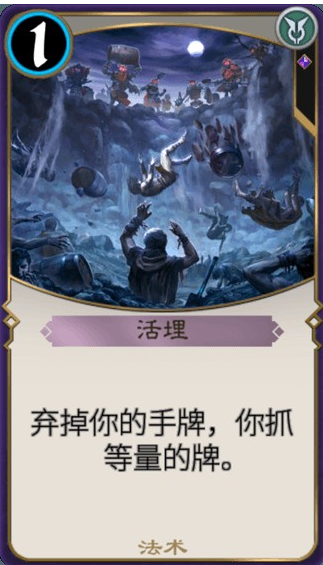 但在现开中【活埋】的作用并不能很好的体现。亏一卡亏一费换掉当前手牌,并不值得。一旦进入到抽一打一的阶段上手直接崩盘。