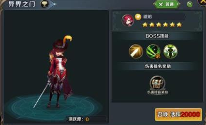 1、异界之门的boss需要会长消耗活跃值进行召唤,活跃值可以通过公会人员消耗体力获得。