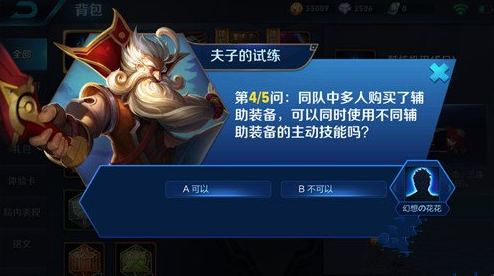 以上就是西西小编为大家带来的同队中多人购买了辅助装备,可以同时使用不同辅助装备的主动技能吗,王者荣耀夫子的试练答题答案。希望大家喜欢。