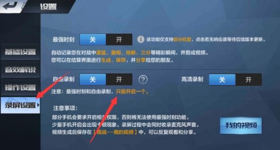 2、然后选择【录屏设置】,将录制功能打开即可录制在游戏中精彩时刻。
