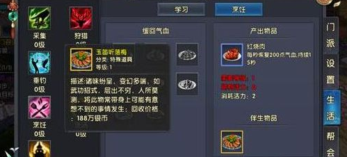 至于玉笛听落梅的获取,跟前面提到的莽牯朱蛤获取途径一样,需要先习得生活技能烹饪,是在烹饪过程中有几率得到伴生物。