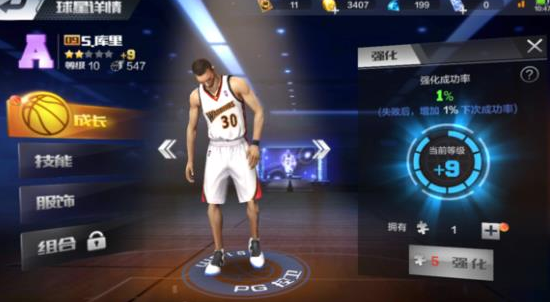 强化+9时候是3407金币,成功+10时候是2447金币,也就是强化了10次,11%的时候成功强化+10,A级球星这概率还行,S和SS级金币有点吃不消,一次1000金币,希望SS球星还能继续欧洲。