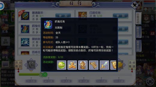 4、每天可完成120次捉鬼任务,120次以后奖励将大幅下降,若使用双倍点数后则不会下 降。