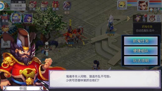 1、只有等级达到20以上的玩家组成3人以上的队伍才可在钟馗处进行捉鬼任务。