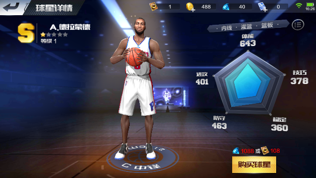 这也是游戏中的一个中锋定位的球星,具有非常不错的实力,也可以说是中锋球星里面非常不错的一位了,玩家在获得了这个球星之后,就可以进行一定的升级和强化,不断地提升球星,在赛场上比赛的时候,才可以更加容易的取得胜利。在搭配球星的时候,也是需要讲究一定技巧的,这样在玩的时候,玩家必须充分了解每一个球星的特长,根据球星的特长来搭配出一个不错的阵容,并且可以更加容易地取得胜利。