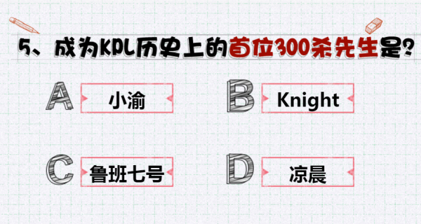 成为KPL历史上的首位300杀先生是谁 王者周年电竞小考卷答案