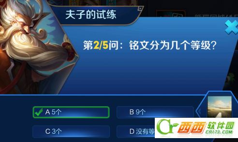 首页 → 安卓游戏资讯 → 安卓游戏攻略 → 王者荣耀铭文分为几个等级 夫子的试练答题答案