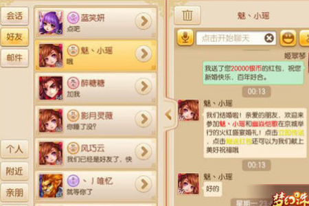 提交道具后,准夫妻二人就会分别向各自游戏好友发送婚礼邀请函,亲朋好友可通过邀请函立即传送到婚礼现场,同时还可以通过邀请函赠送红包献上美好祝福。赠送红包时,可选择赠送银币或元宝,单人仅限赠送一次红包祝福。