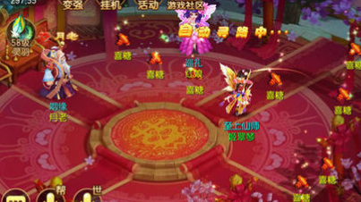 梦幻诛仙手游中,准夫妻双方提交婚礼道具后,就会在京城NPC月老处前红台子上举行婚礼仪式。月老为证婚人,传统的中国式婚礼拜天地、拜高堂和夫妻对拜后,双方正式结为夫妻。结婚仪式结束时,会洒落大量喜糖,围观玩家都可拾取。