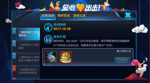 10月28日当日登录,即可领取周年狂欢大礼包。