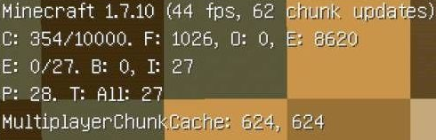 你可以通过F3中的信息来看到你所在格子受到的亮度级别。在1.7及以下版本中,F3显示的信息倒数第二行中的bl表示你的头所在格子非自然光源亮度,sl表示自然光源亮度,rl为合成亮度,即sl和bl的最大值。为了保证晚上(地下农场中白天也是)作物正常生长你需要让每个作物方块上方bl值>=10,因为你的光源通常比作物高一格;如果你的光源全部与作物在同一高度,你保证这个值>=8即可。