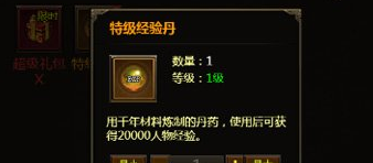 最后呢小编要说的就是一些辅助性的道具了,比如说经验丹,就可以为玩家提供大量的经验值,升级自然就会变得更加轻松。