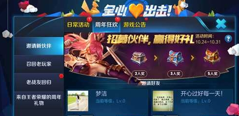 王者荣耀邀请新伙伴有什么奖励?邀请新伙伴奖励大全。王者荣耀邀请新伙伴有什么奖励呢?邀请新伙伴可以一同战斗还可以领取奖励,小编为大家带来相关介绍,希望能帮助到各位玩家!