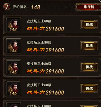 玩家达到80级就可以开放竞技场了,来这里不断挑战前面的对手,提升自己的竞技场名次吧,无上的荣耀,丰厚的奖励,通通都在等着你哦。
