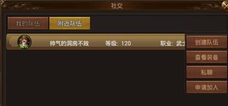 邀请式:在附近玩家的界面中,选择玩家后,点击组队按钮。即可邀请玩家入队或申请入队。本地图的玩家都会被显示在附近玩家界面中。