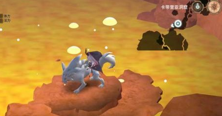卡带里亚洞窟岩浆的伤害很高,使用其他宠物过去,都会受到伤害,但是石头人就不会。