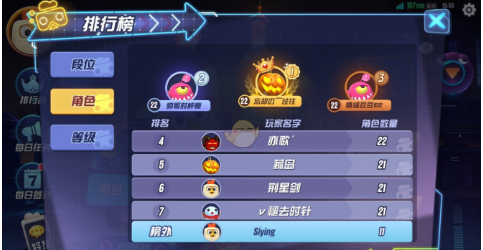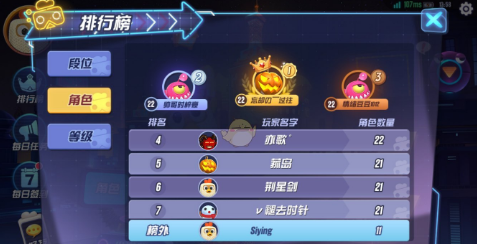【角色排行榜】新增角色排行榜,按照玩家解锁的游戏角色数量进行排序。