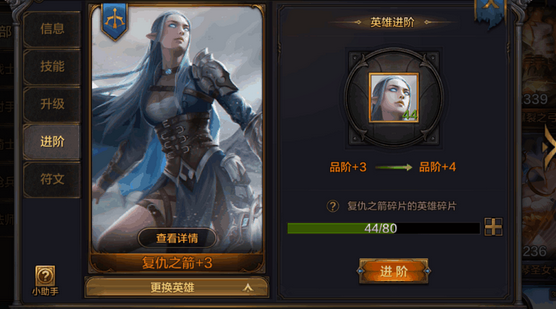 提升英雄的品阶也会提升不少的战斗力,然而抽取相同英雄也是一件可遇不可求的事情。毕竟我们能自行换取的英雄只有两个,分别是复仇之箭和战场之虎(这两个英雄还是比较好升阶的)。