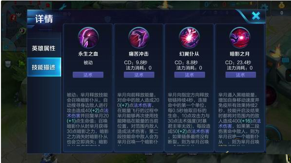 永生之血:芈月释放技能之后将召唤暗影仆从围绕在自身周围,暗影仆从会自动搜寻附近敌方单位进行攻击并回复芈月的生命值。召唤暗影仆从时芈月将获得暗影之力,当暗影之力消失时暗影仆从也会随之消失(暗影仆从最多存在六个)。该技能可以为芈月带来超强的回复生命值能力,在战斗时应尽量保持暗影仆从的数量。