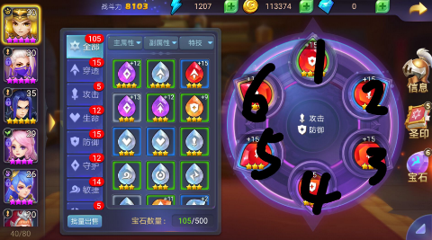 主属性选择--1 2号位固定不变,3号4号防御属性,5号6号位攻击强度