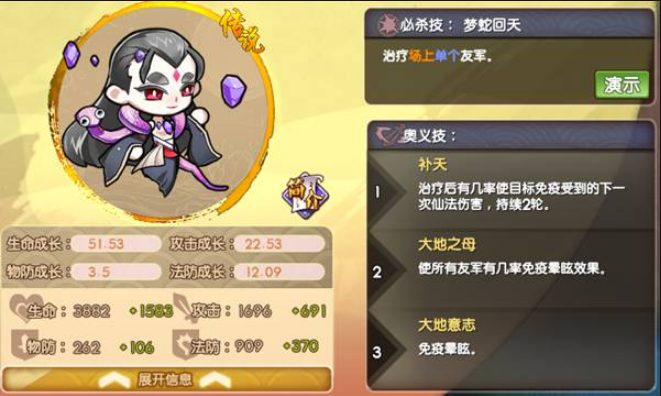 敖寸心是个单体治疗很高的治疗,有几率触发的连续治疗效果有时能产生奇效,搭配杨戬、哪吒、黄飞虎都是不错的选择。