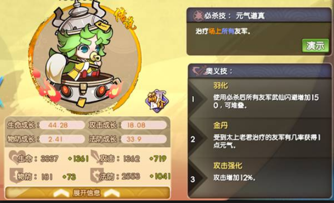 太上老君不仅能增加武仙的闪避,还能用法术牌免疫仙法伤害,非常适合搭配姜子牙、旱魃这类有额外闪避收益的武仙。
