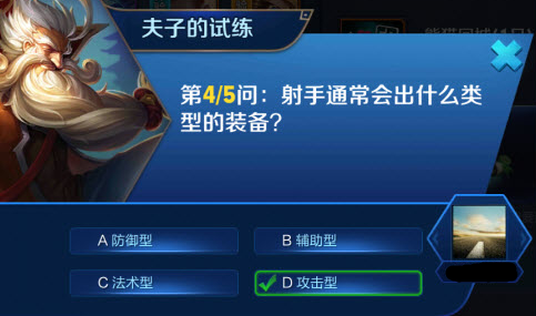 首页 → 安卓游戏资讯 → 安卓游戏攻略 → 射手通常会出什么类型的装备 王者荣耀夫子的试练答题答案