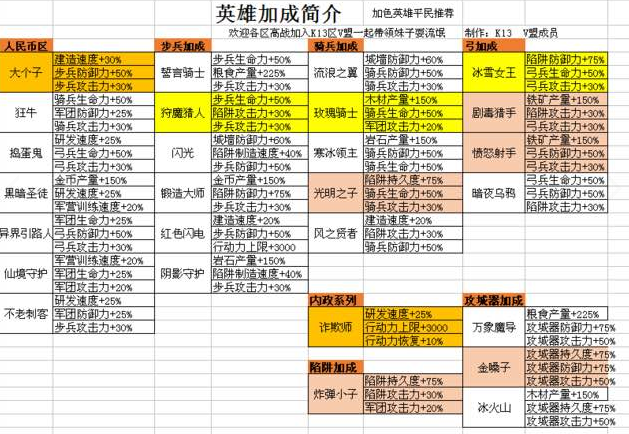英雄上推荐以骑兵加成为主,骑兵加成英雄最好达到3或4个的比例,因为骑兵既是输出也是前排,配合一个或两个有弓箭手攻击加成的英雄。