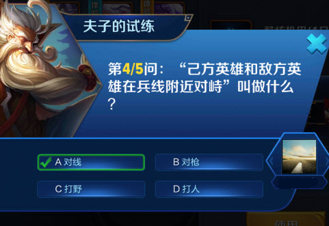 首页 → 安卓游戏资讯 → 安卓游戏攻略 → 己方英雄和敌方英雄在兵线附近对峙叫做什么 王者荣耀夫子的试练答题答案
