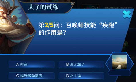 首页 → 安卓游戏资讯 → 安卓游戏攻略 → 召唤师技能疾跑的作用是 王者荣耀夫子的试练答题答案