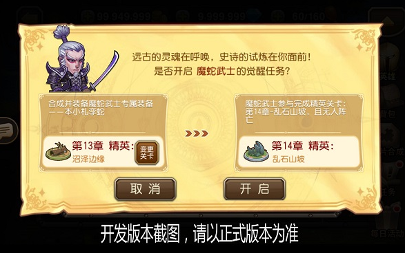 觉醒之旅第一站:队长大大们可以在13-20章精英副本中收集魔蛇武士的觉醒材料;