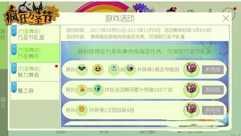 装扮不符、捣蛋鬼,并在活动期间累计吞噬200个球,可得万圣节礼盒*3;