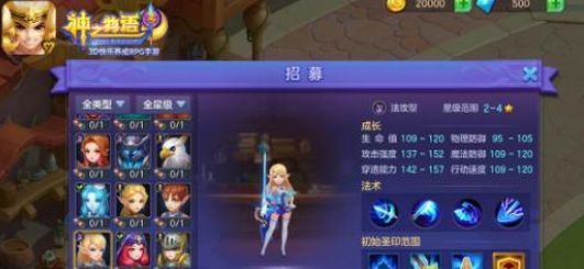 神之物语骑士种类多样,主要包括物攻型、法攻型、物防型、法防型、辅助型五大类,并按照骑士资质分为1-3星、2-4星、3-5星三个不同的等级,每个等级的骑士可在星级范围内获得晋升。而萌新们初进入游戏,想要快速成长发育,招募易上手、攻击高的骑士是不错的选择。
