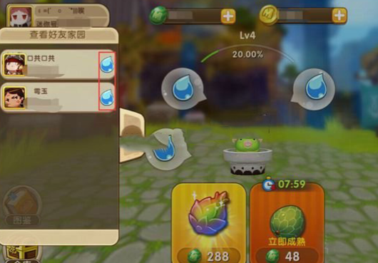 在家园左侧点开好友列表,可以如果好友头像边上有一个小水滴的图案,说明这个好友的植物需要浇水;