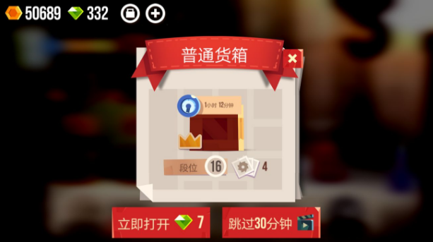 关于广告,一般是早上9点更新了,然后只能刷6次。但晚上9点的时候用钻石开了箱子,然后发现又可以刷广告时间(不知是不是Bug)这次小编刷了一个整个铁箱外加两次广告(铁箱6个小时,广告一次减30分)。