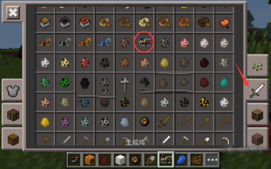 进入游戏后,如果你是创造,可以在这个地方找到火车的生成蛋: