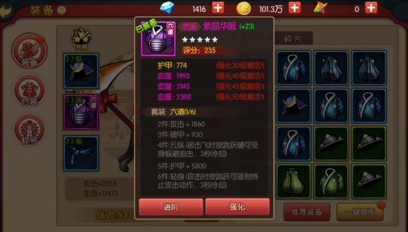 ②副本里面的魔王级别关卡,有几率掉落紫晶碎片,合成可能得到套装部件。
