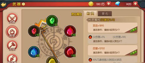 4、灵石合成:可以将两个属性与等级相同的灵石合成为一个等级+1的同属