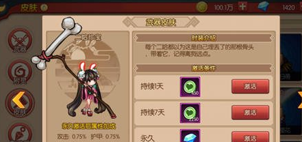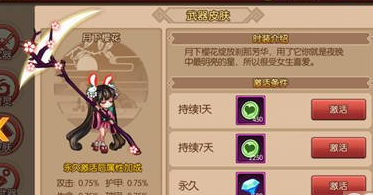 2、解锁武器皮肤可以获得对应的属性加成,皮肤时效结束后属性收回。