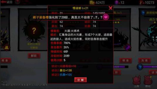 技能解析:从技能描述上看属于攻击技能,其实该技能带有一定的持续伤害效果,这就是火焰伤害,可以同时对范围内7个敌人造成伤害,同时提高自身攻击力造成大量伤害,在清理怪物刷图通关中有很大帮助,适合刷本和挑战高难度关卡搭配宠物使用。