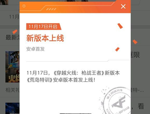 11月17日,穿越火线枪战王者新版本荒岛特训安卓版本首发上线!