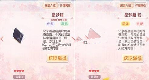 星法法用于占卜的书籍,每一本似乎都记录着不一样的内容。经典的深蓝色星梦籍上为星法法指明的当天运势是三颗星,幸运色与封皮颜色一样是蓝色;而粉色的星梦籍上指明的幸运色则是粉色,真是十分奇妙呢!