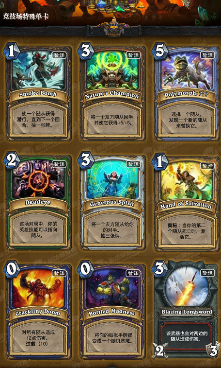 这些卡都是竞技场专属,也就是说天梯无法构筑使用,当然也无需合成和开包