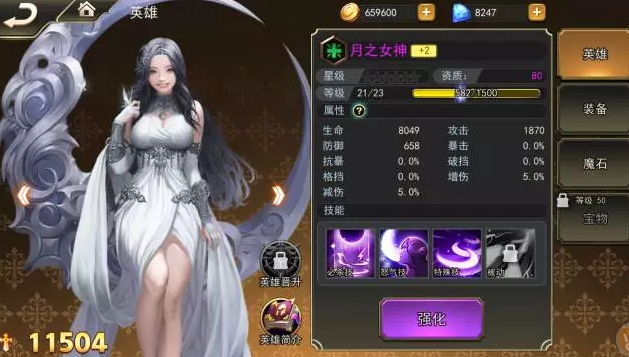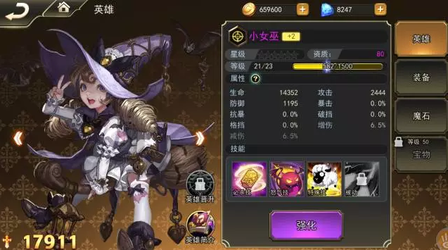 根据资质,可以分为紫卡(80资质),橙卡(100资质),热点卡(120资质),红卡(150资质)。一次战斗最多上阵6名英雄,这里建议每个职业至少上一位,可以触发上阵光环BUFF。
