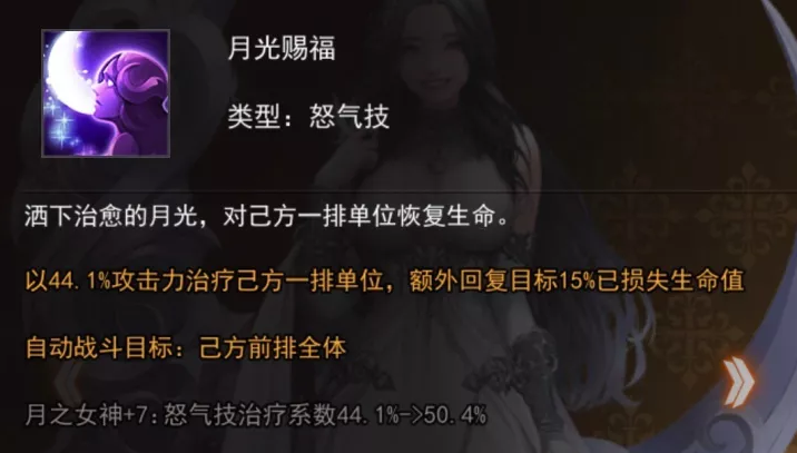 无论是被动给随机一方增加怒气,使得全队怒气技能频率更高,还是疗血量,保护全队,使得全队生存能力大大的加强。硬要说一个缺点,就是奶量稍显不足,比起全职奶妈精灵祭祀略有不足,但是我不在乎,我依然钟爱她。