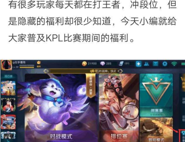 王者荣耀kpl比赛隐藏福利有哪些,kpl比赛隐藏福利介绍。王者荣耀kpl秋季赛期间具有许多隐藏的活动福利,而许多玩家光顾着体验游戏的乐趣,还不太清楚王者荣耀kpl比赛隐藏福利有哪些,下面小编就给大家带来kpl比赛隐藏福利介绍,感兴趣的玩家快来看看吧!