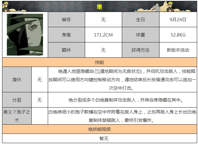 火影忍者手游绝值得入手吗,绝技能属性一览。火影忍者手游将要上线新的忍者绝,玩家通过新版本活动可以拿到这个忍者,火影忍者手游绝值得入手吗,西西小编为大家带来绝技能属性一览。