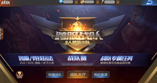 全新跨服战队玩法,玩家可创建自己的战队或加入别人的战队,战队最多由1名队长和2名队员组成。加入战队后,可以与战队成员共同参与多人玩法,完成战队任务,